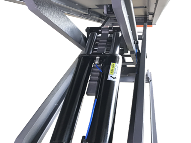 ◆ 8 cylinders, double hydraulic balance system(main lift)and mechanical safety with automatic unlock are equipped
